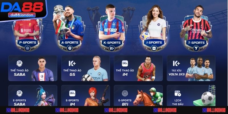 Thể thao DA88 là điểm đến lý tưởng cho những ai yêu thích các môn thể thao từ bóng đá, bóng rổ, tennis cho đến eSports. Với giao diện hiện đại, tỷ lệ kèo chuẩn quốc tế và nhiều ưu đãi hấp dẫn, người chơi dễ dàng lựa chọn trận đấu yêu thích để tham gia dự đoán.